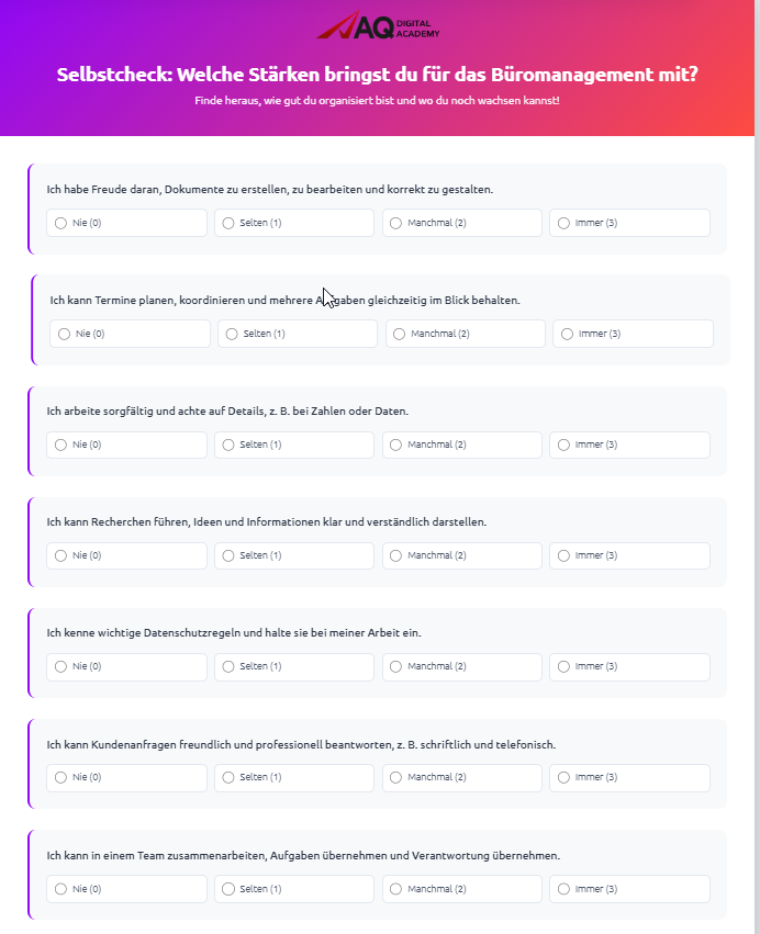 Unsere nächsten Vollzeit-Umschulungen starten wöchentlich vom 02.02.2026. Nutze diese Gelegenheit.